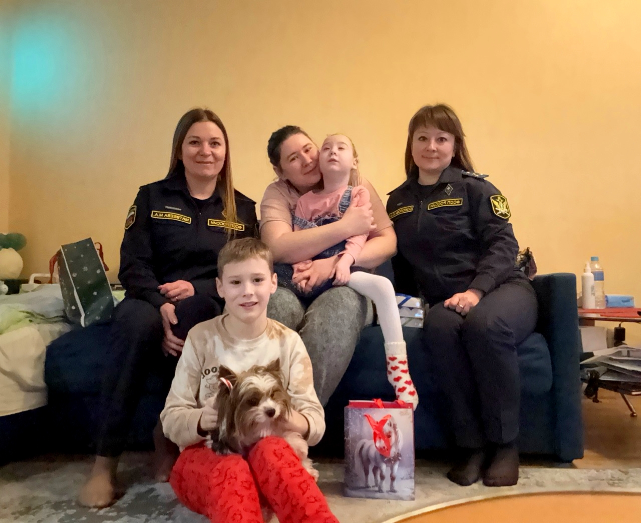 Сотрудники органа принудительного исполнения приехали в гости к семье мечтательницы и вручили ей умную колонку. Без подарка не остался и старший брат девочки, который получил от судебных приставов сладкий подарок и набор для творчества.