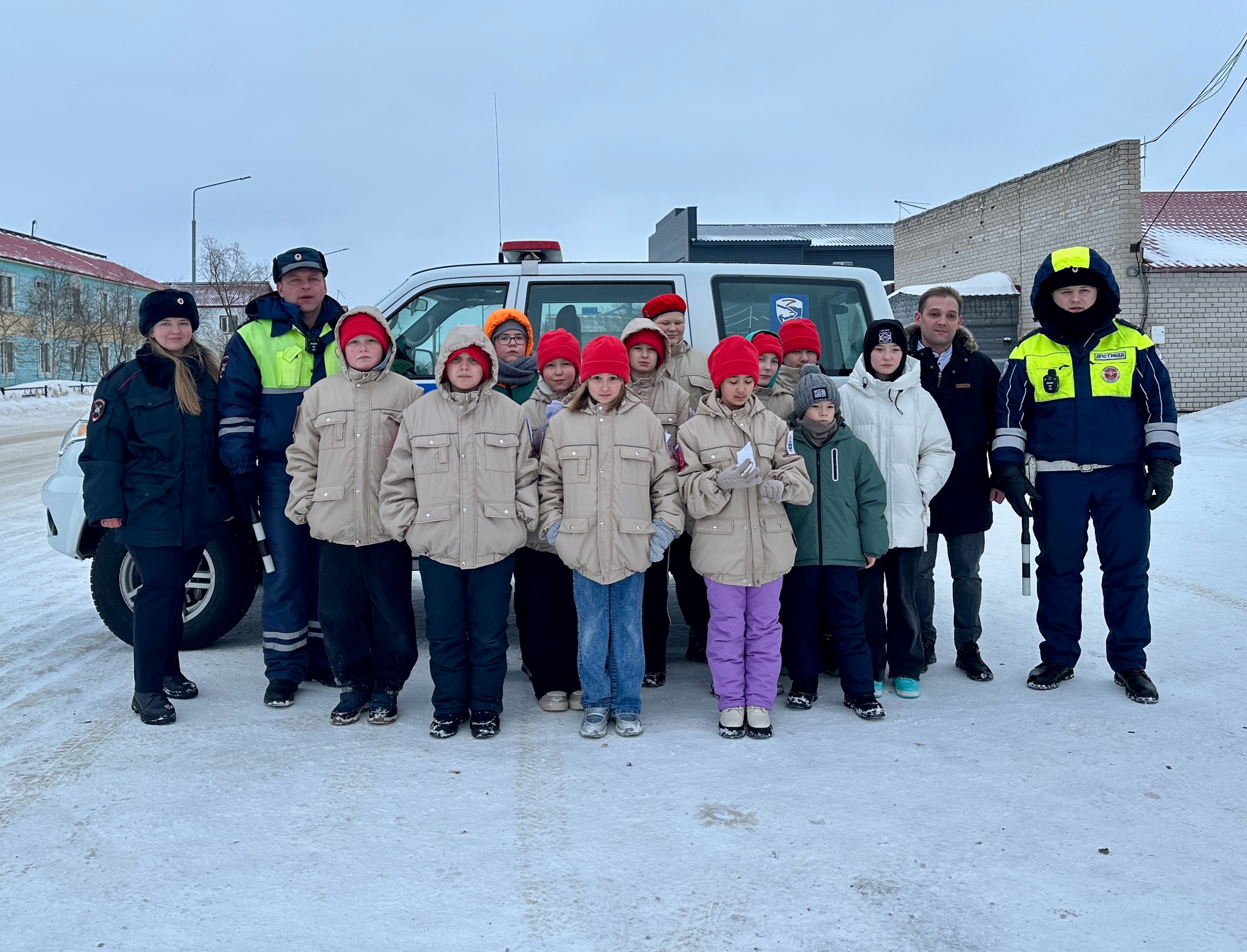 Инспекторы дорожно-патрульной службы и представители молодёжного объединения «Юнармия» поздравили мужчин-водителей с Днём защитника Отечества и вручили