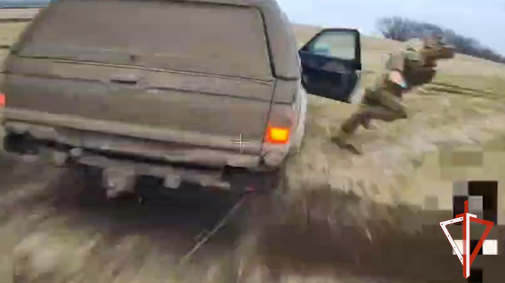 В ходе наблюдения за позициями противника в одном из районов Курской области операторами БПЛА Росгвардии был обнаружен автомобиль противника, осуществлявший