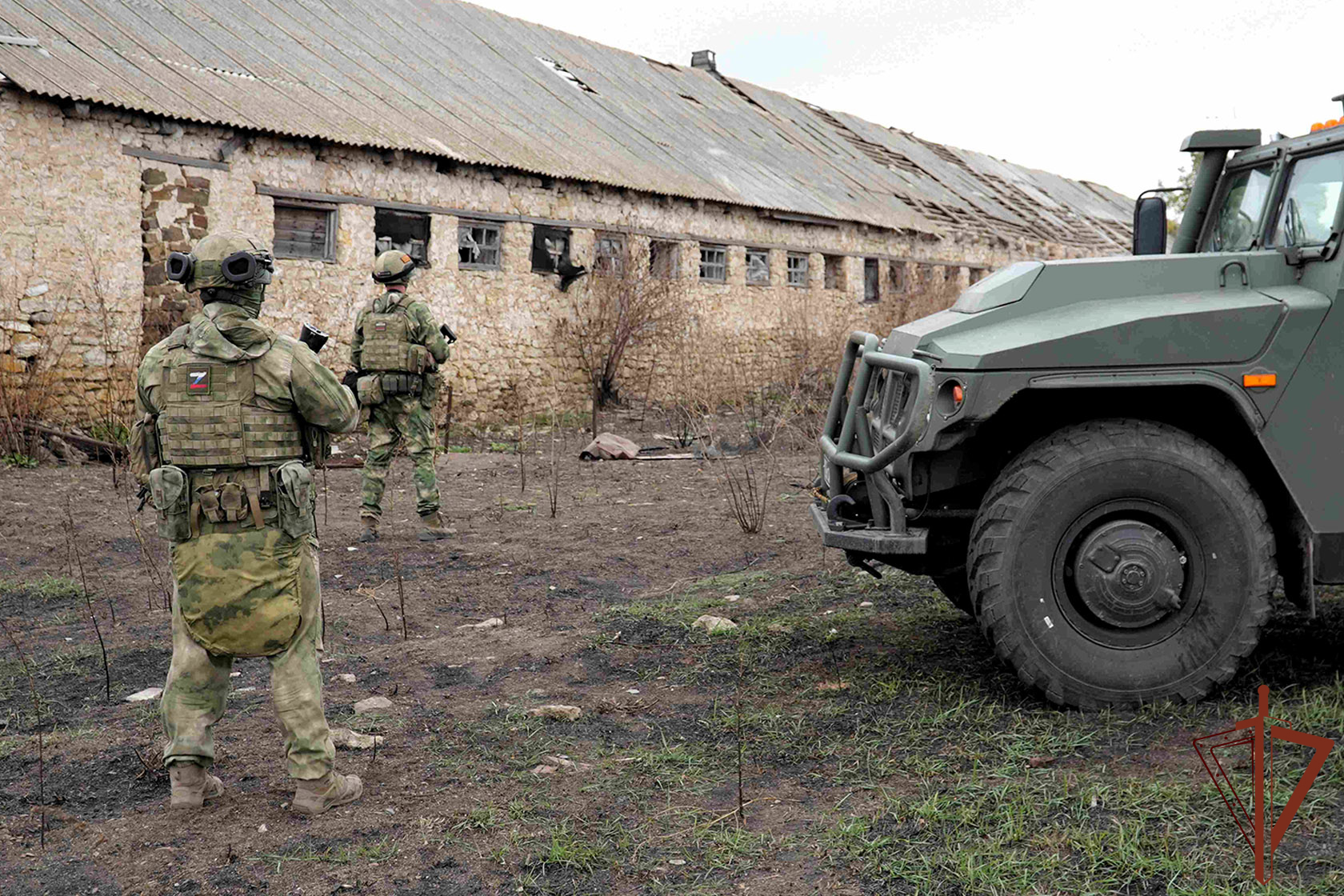 Бойцы спецназа Росгвардии наносят огневое поражение технике неонацистов, пытавшихся прорваться на территорию Российской Федерации. На кадрах из пункта