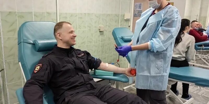 Сотрудники ОБ ППС УВД по СЗАО ГУ МВД России по г. Москве приняли участие в Дне донора в больнице № 52. Прежде чем сдать кровь, все полицейские прошли обязательное