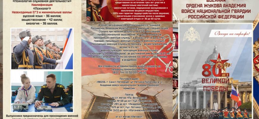 Военная ордена Жукова академия войск национальной гвардии Российской Федерации осуществляет подготовку курсантов по следующим направлениям: артиллерийское