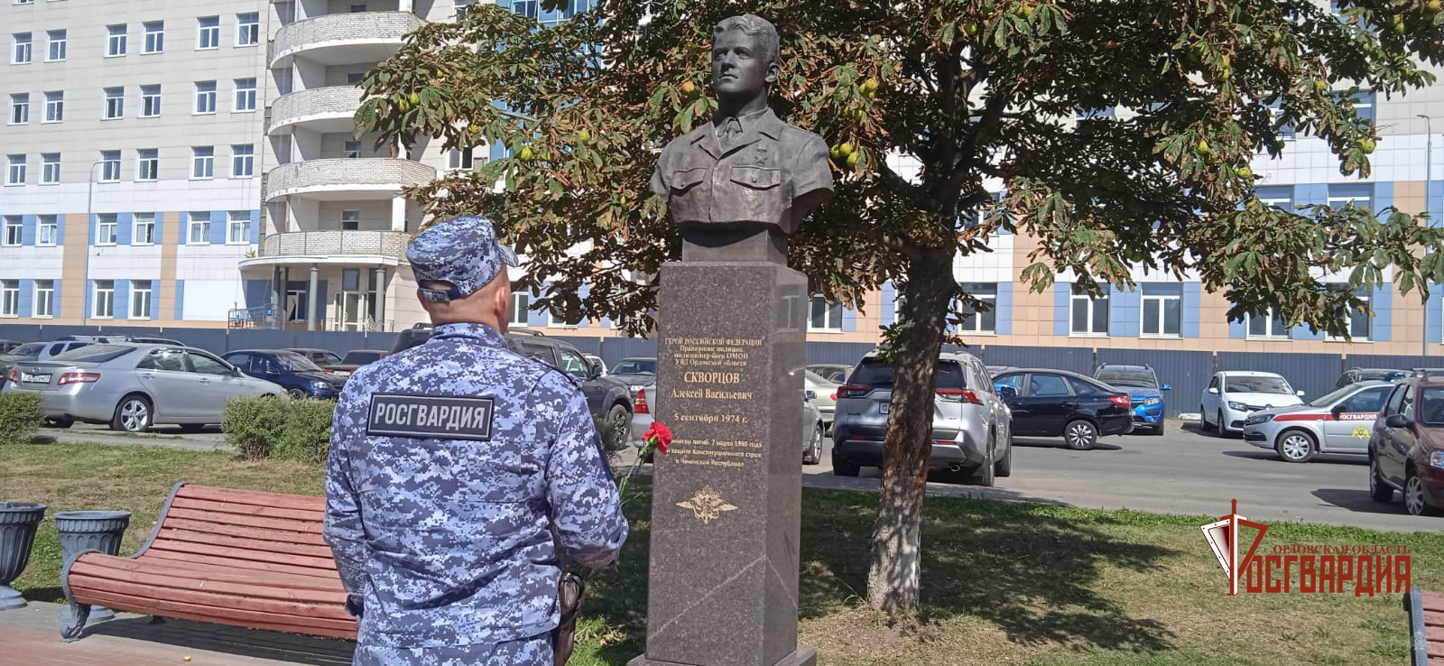 Сотрудники и военнослужащие Управления Росгвардии по Орловской области отдали долг памяти Герою Российской Федерации прапорщику милиции ОМОН Алексею Скворцову.