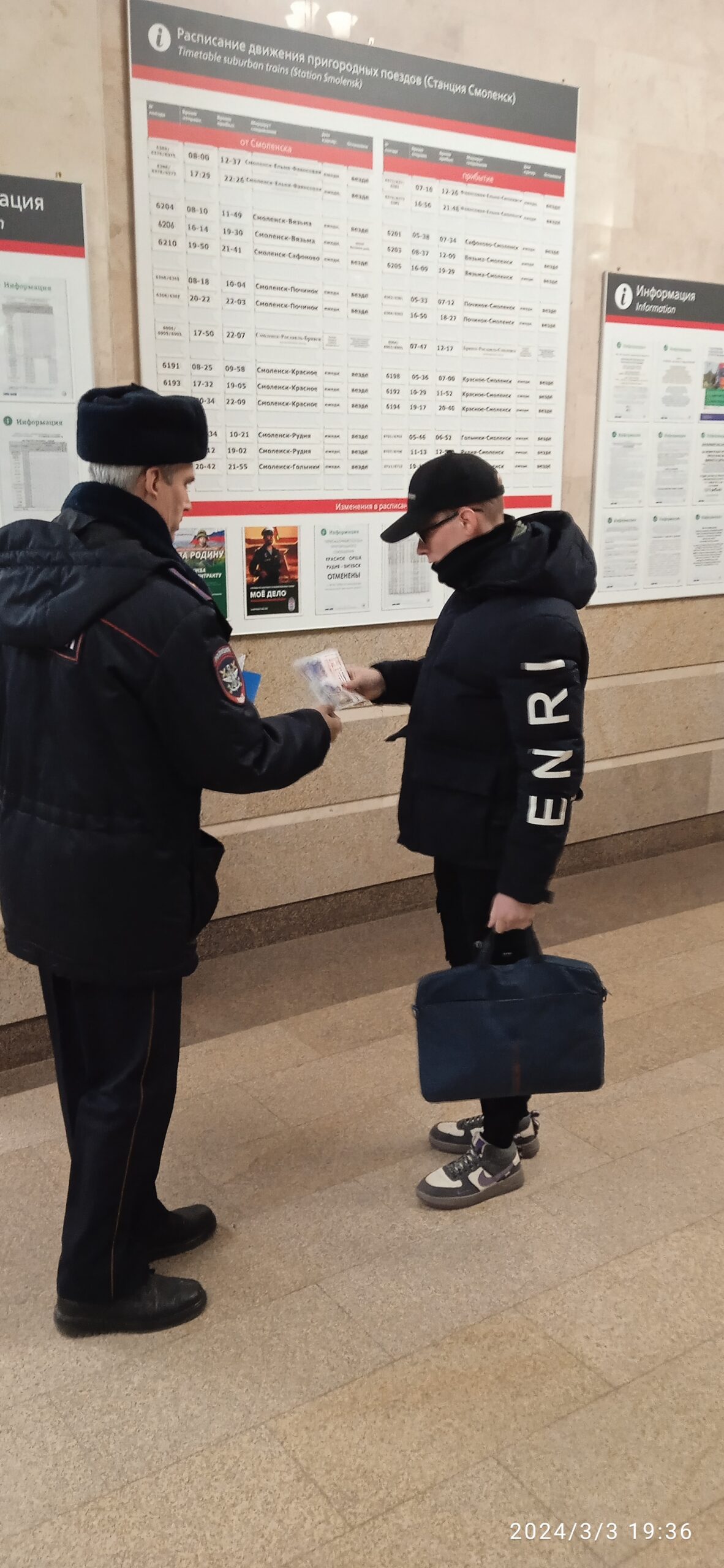 На участке обслуживания линейного отдела МВД России на станции Смоленск проводилось оперативно-профилактическое мероприятие, направленное на профилактику