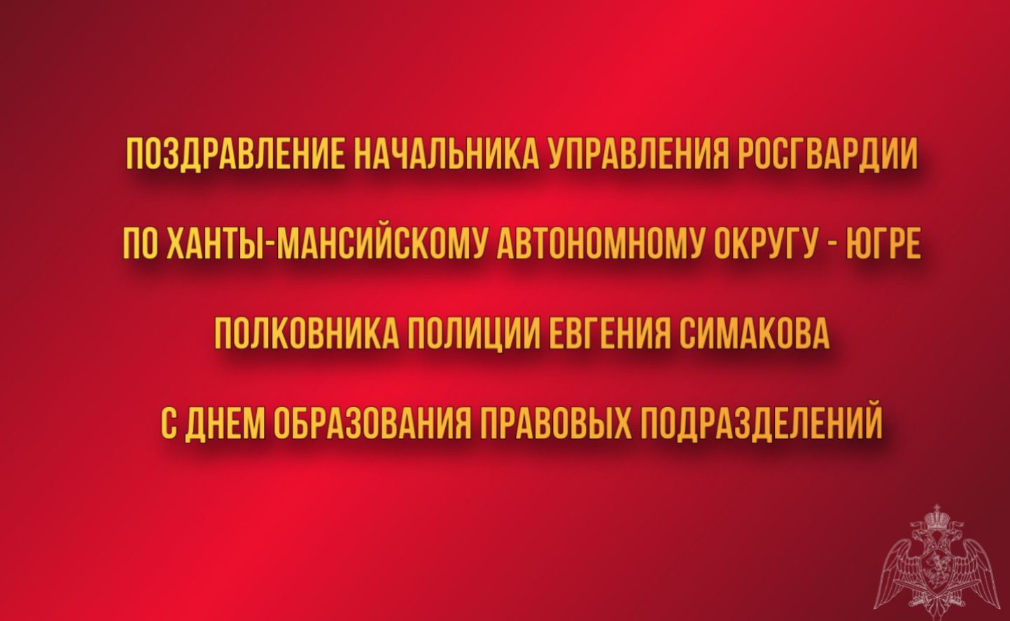 Уважаемые коллеги! От имени руководства, личного состава Управления Росгвардии по Ханты — Мансийскому автономному округу – Югре и от себя лично поздравляю