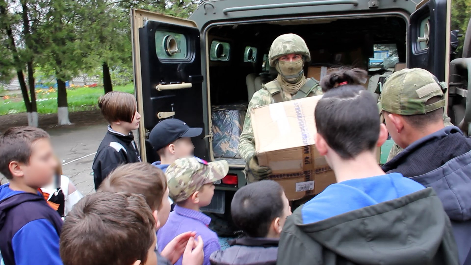 Военнослужащие Росгвардии, выполняющие служебно-боевые задачи в Херсонской области, передали учащимся местной школы от Московского президентского кадетского