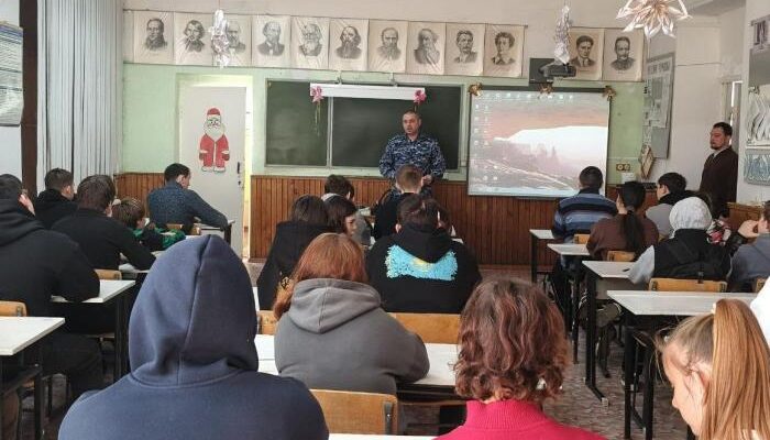 В городе Ясном начальник отделения лицензионно-разрешительной работы «Ясненское» капитан полиции Евгений Шонин встретился со студентами Горно-технологического техникума.