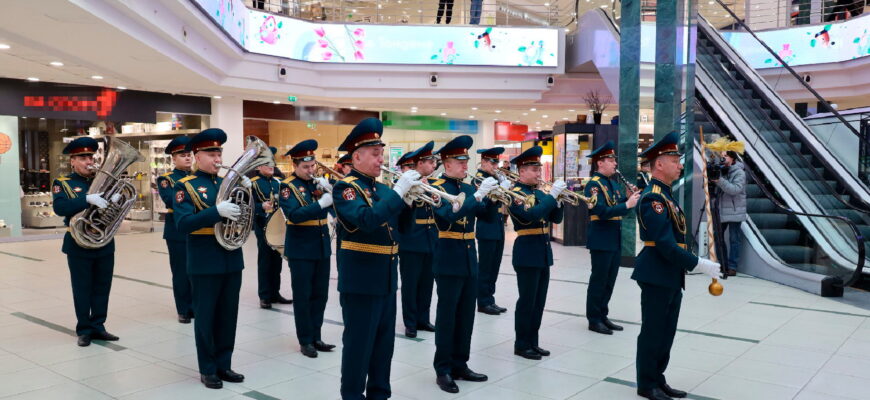 Приятный сюрприз, посвящённый Международному женскому дню 8 Марта и также 10-летию Росгвардии, устроили музыканты военного оркестра казанского полка Росгвардии
