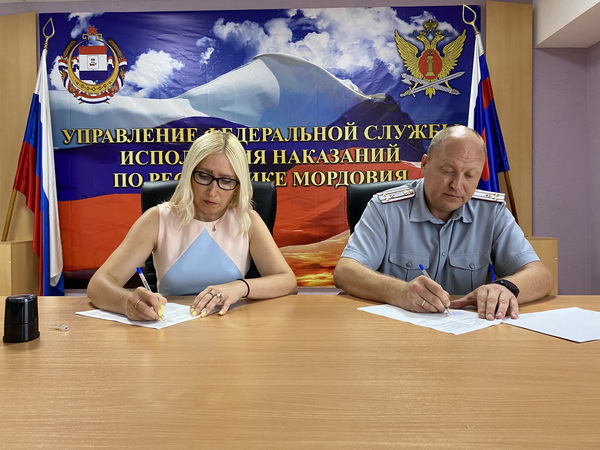 Начальник уголовно-исполнительной инспекции УФСИН России по Республике Мордовия Алексей Федин и директор Государственного юридического бюро Республики