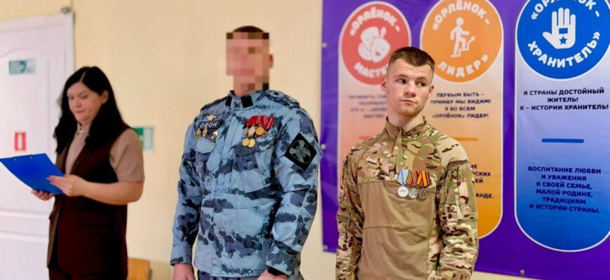 В Мордовии сотрудник ОМОН «Аркуда» Управления Росгвардии по Республике Мордовия провел урок мужества, посвященный 10-летию образования образования войск