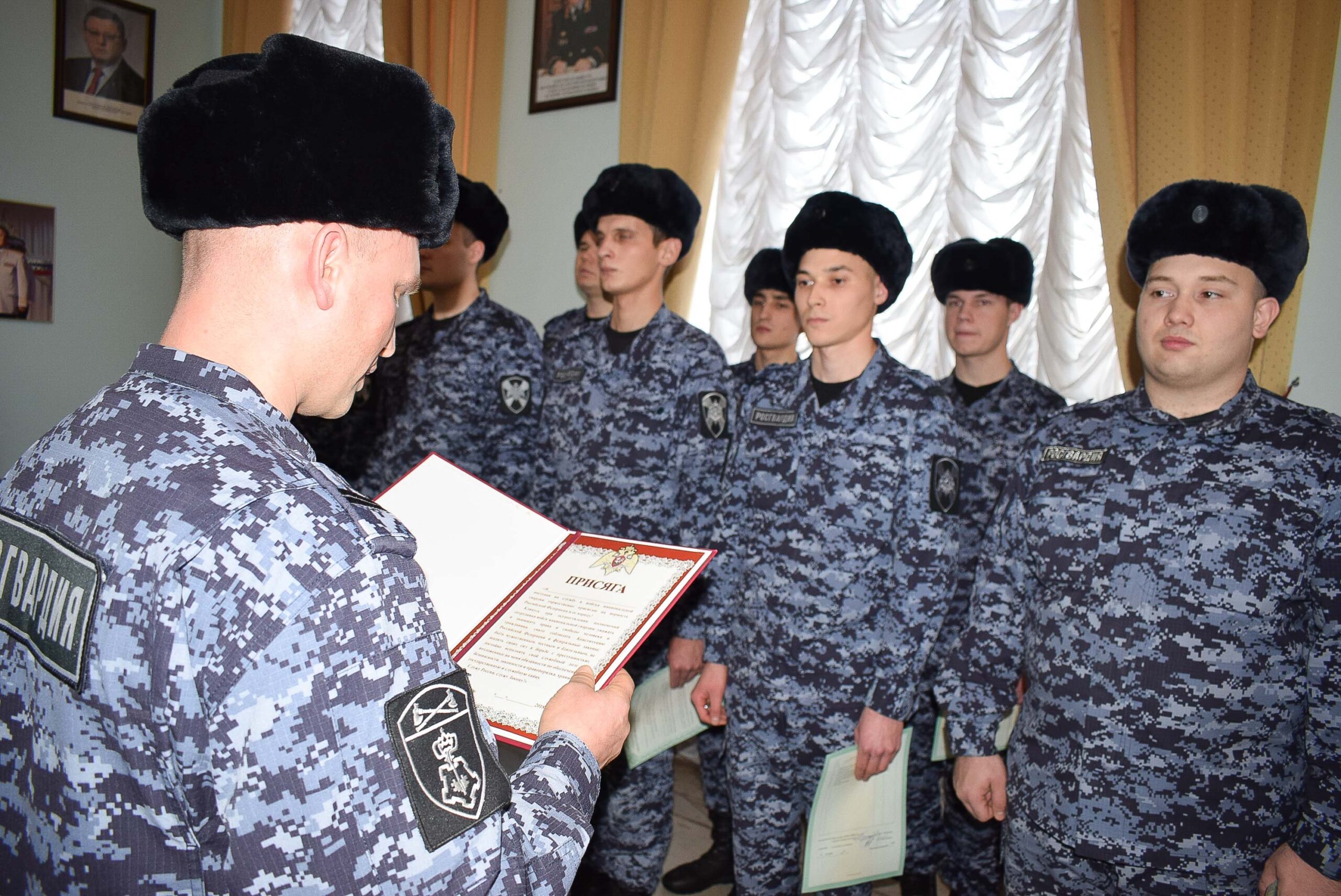 На верность Отечеству и его народу присягнули 24 росгвардейца, которые на днях завершили профессиональное обучение в ВУЗе. В течение трех месяцев они изучали