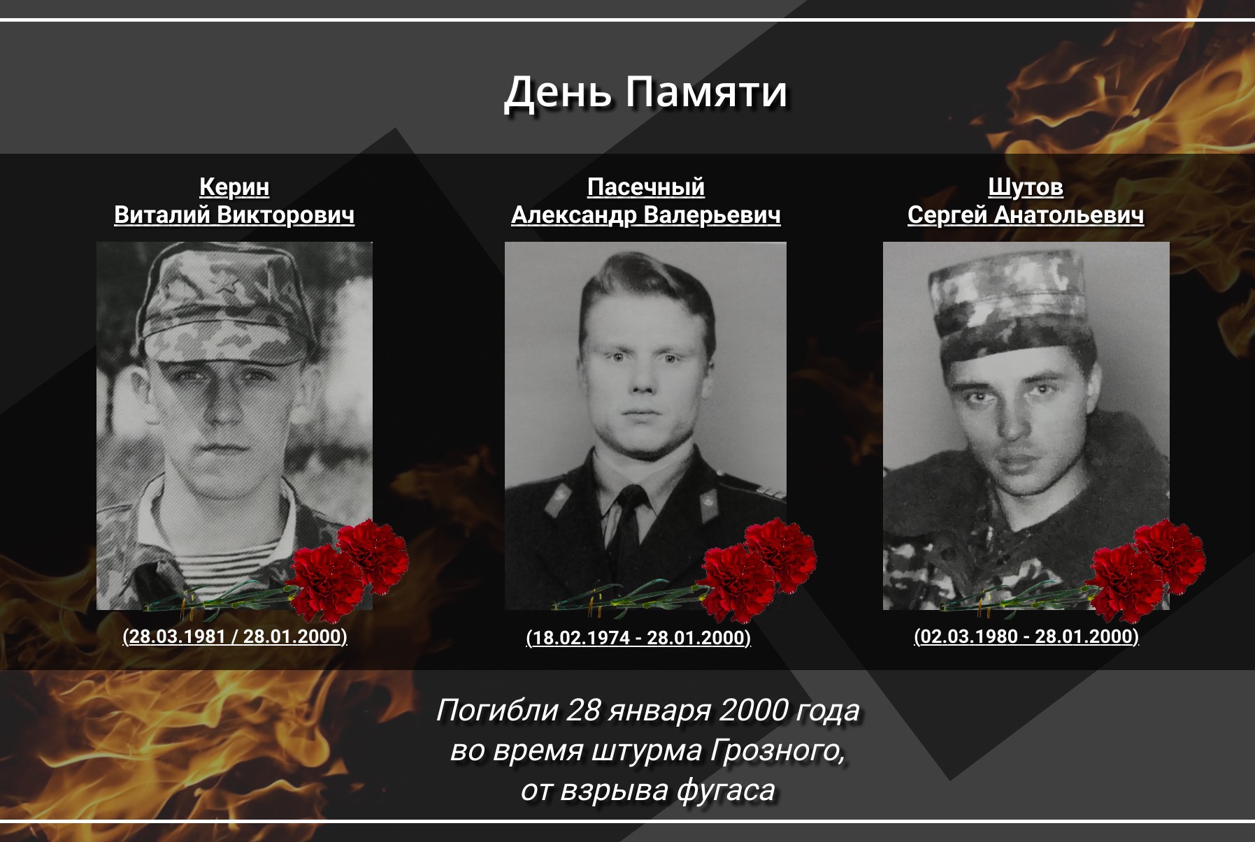 28 января отмечался день памяти трёх военнослужащих внутренних войск – уроженцев Архангельска, Плесецкого и Каргопольского районов Архангельской области