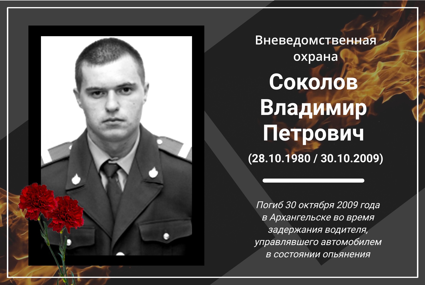 В Архангельской области почтили память старшего сержанта милиции Владимира Соколова, погибшего четырнадцать лет назад при задержании правонарушителя.