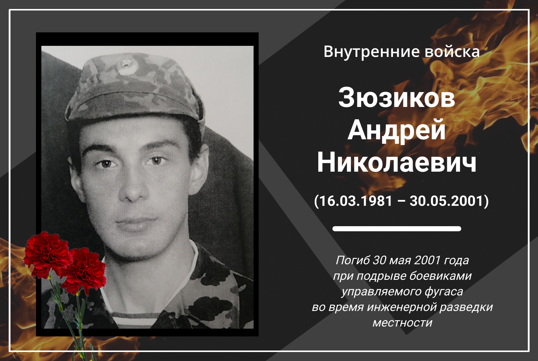 Сегодня отмечается 23 годовщина со дня гибели военнослужащего внутренних войск – сержанта Зюзикова Андрея, погибшего при выполнении воинского долга на