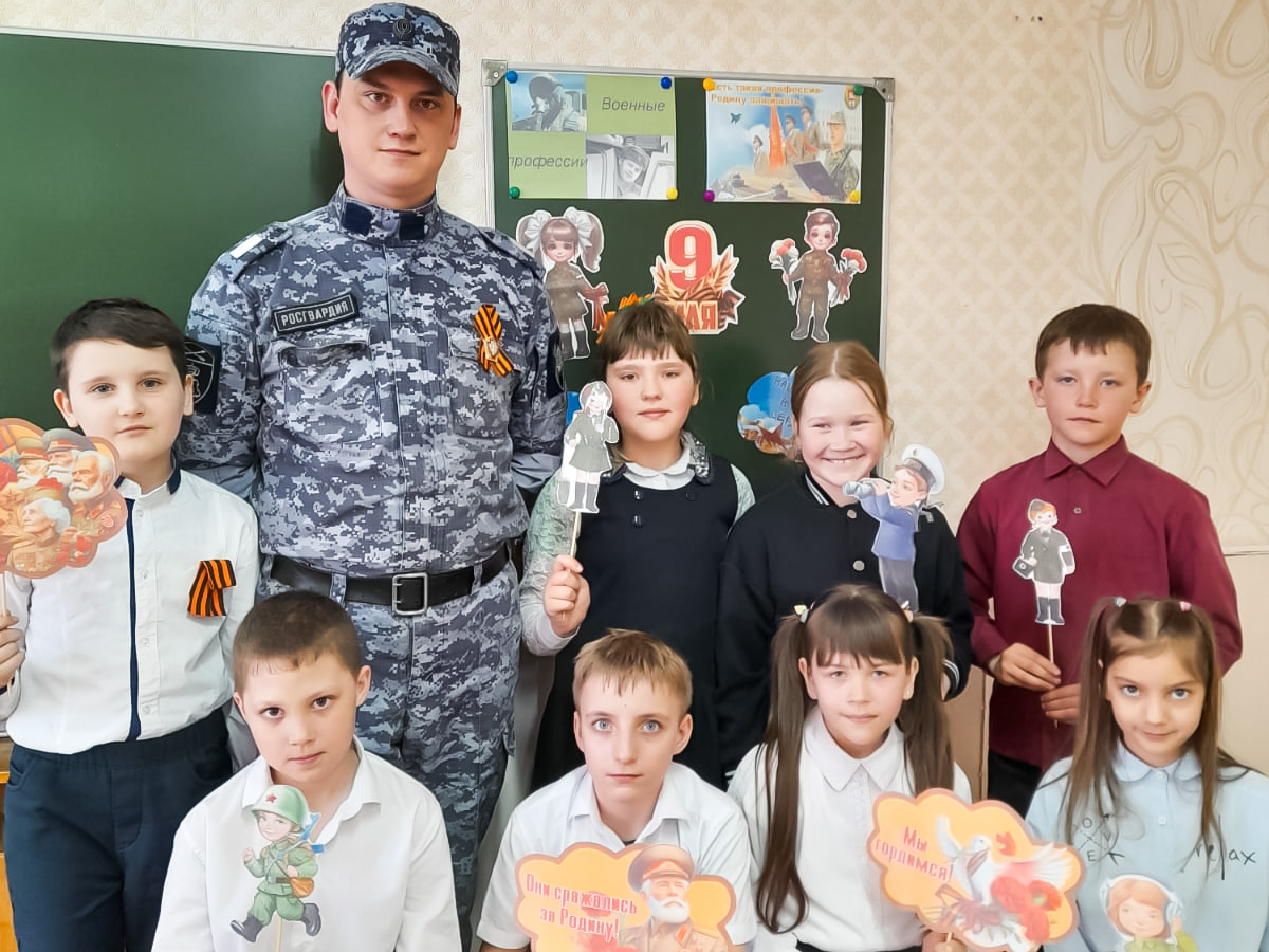В преддверии 79-й годовщины Победы в Великой Отечественной войне сотрудник филиала вневедомственной охраны Росгвардии старшина Егор Курьянович провел для