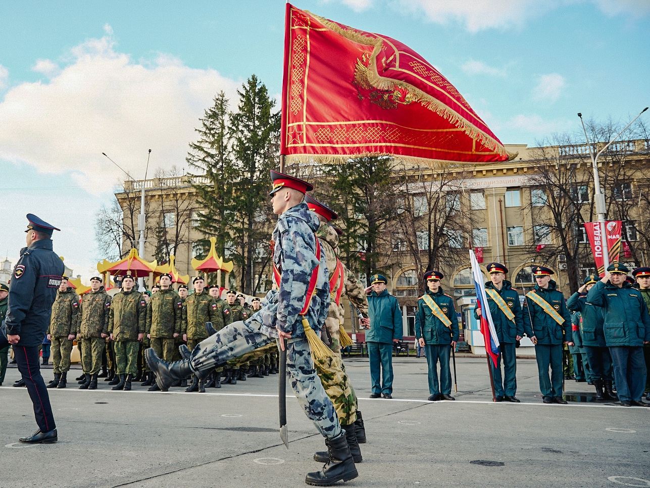 В областном центре активным ходом идет подготовка к 79-летию Победы в Великой Отечественной войне. На площади Советов прошла первая репетиция торжественного