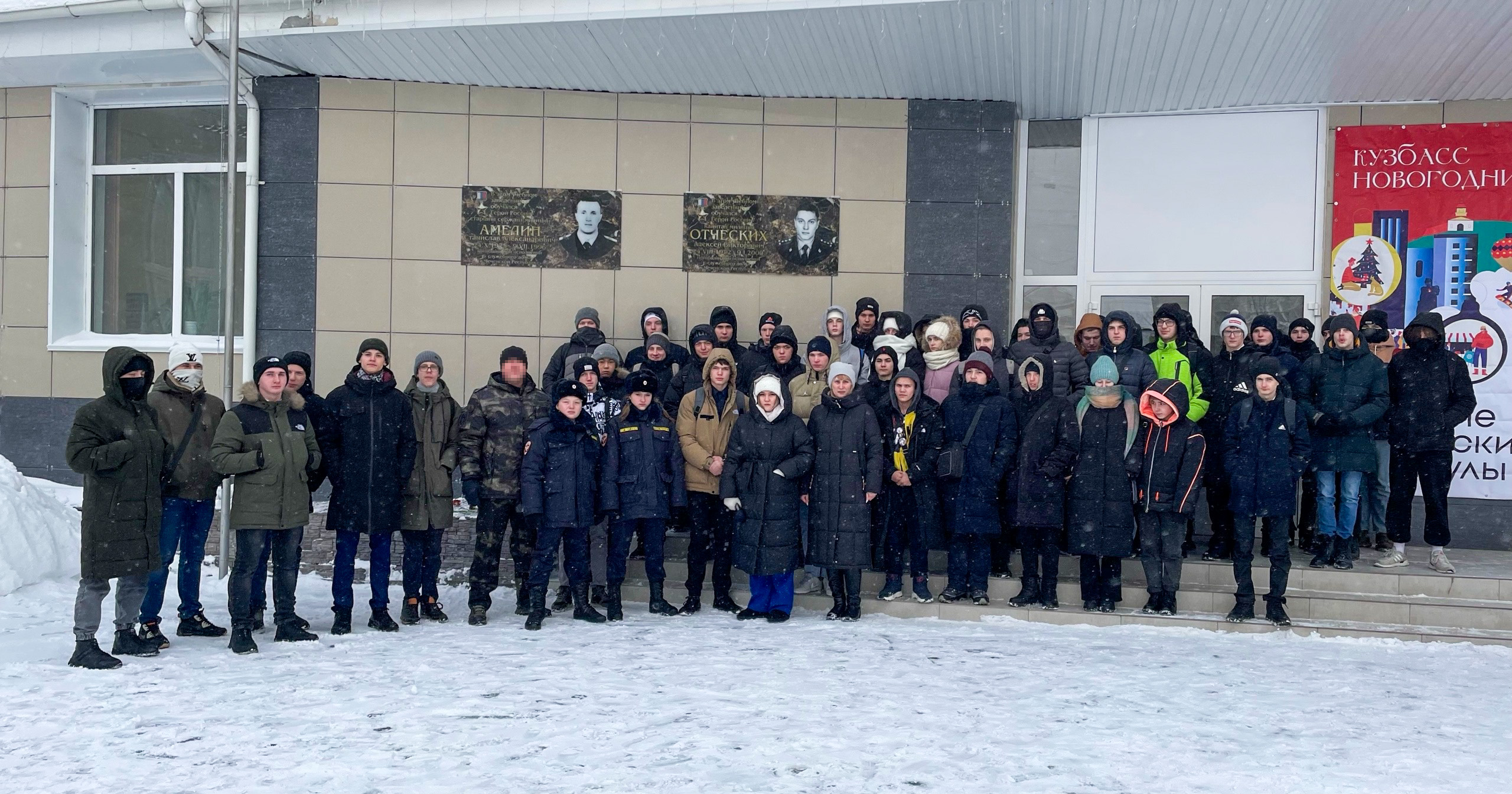 В областном центре в горнотехническом техникуме в честь Дня Героев Отечества прошел памятный митинг, посвященный выпускникам — Героям России из кемеровского СОБР и ОМОН.