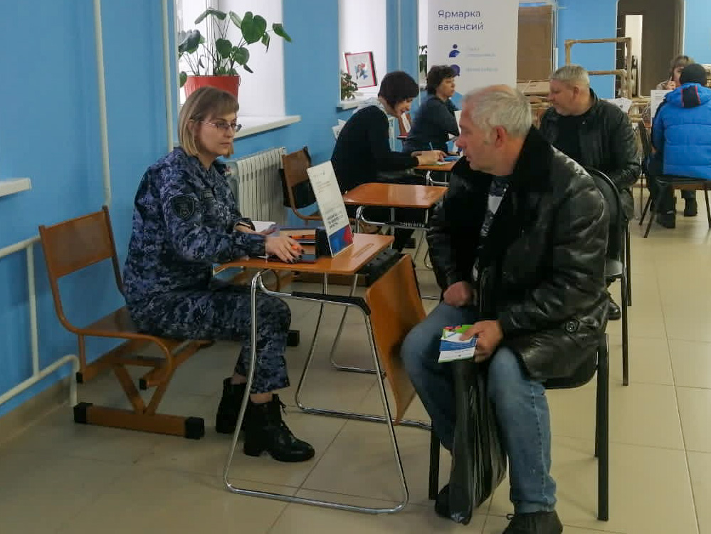 В Киселёвске в кадровом центре прошла ярмарка вакансий при участии представителей Росгвардии. Старший лейтенант Евгения Шматова рассказала о требованиях