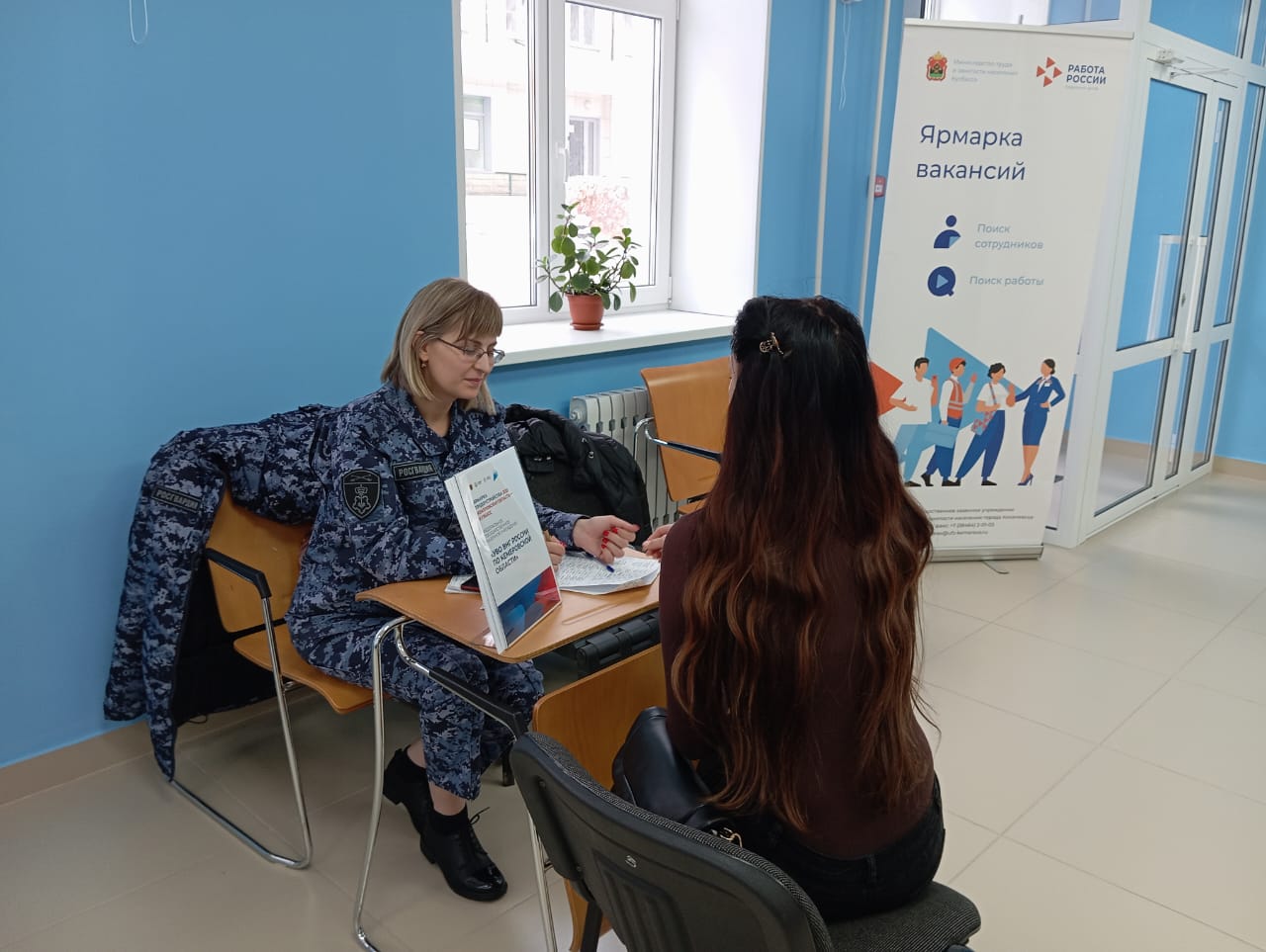 Ярмарка вакансий прошла в Киселевске в Центре занятости населения при участии представителей вневедомственной охраны Росгвардии, которые рассказали о преимуществах службы.