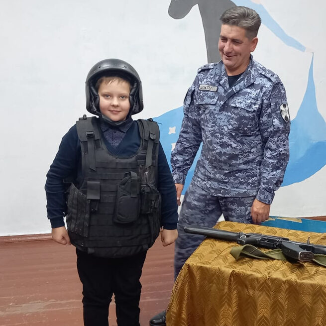 Сегодня офицер Яшкинского филиала вневедомственной охраны Росгвардии, майор Евгений Базинов, провел интерактивный урок безопасности для учеников Литвиновской