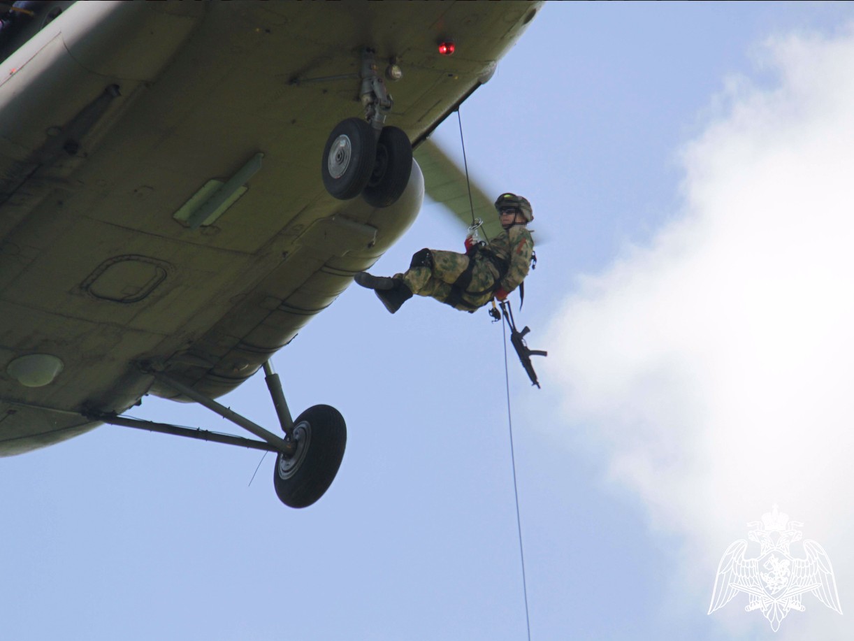 В Кемерове сотрудники ОМОН «Оберег» Управления Росгвардии по Кемеровской области – Кузбассу провели тренировку по беспарашютному десантированию с борта