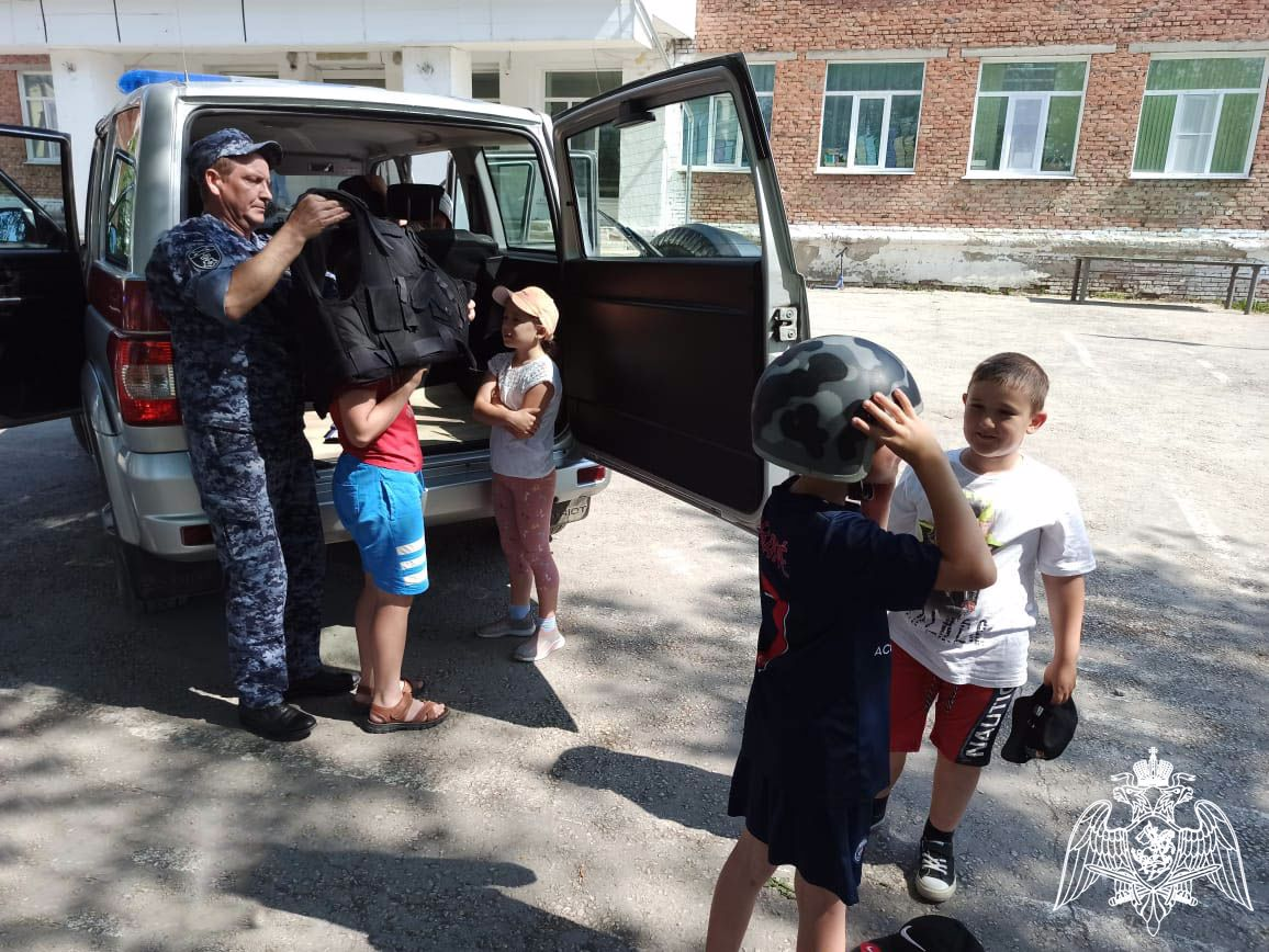 В поселке Яшкино сотрудники филиала вневедомственной охраны Росгвардии посетили детский лагерь «Солнышко», где рассказали ребятам о своей службе.