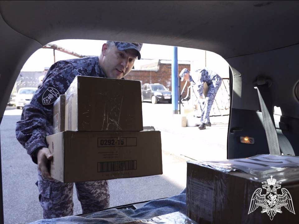 В Прокопьевске сотрудники вневедомственной охраны Росгвардии в рамках ведомственной акции «Своих не бросаем» собрали и отправили посылки для коллег, которые