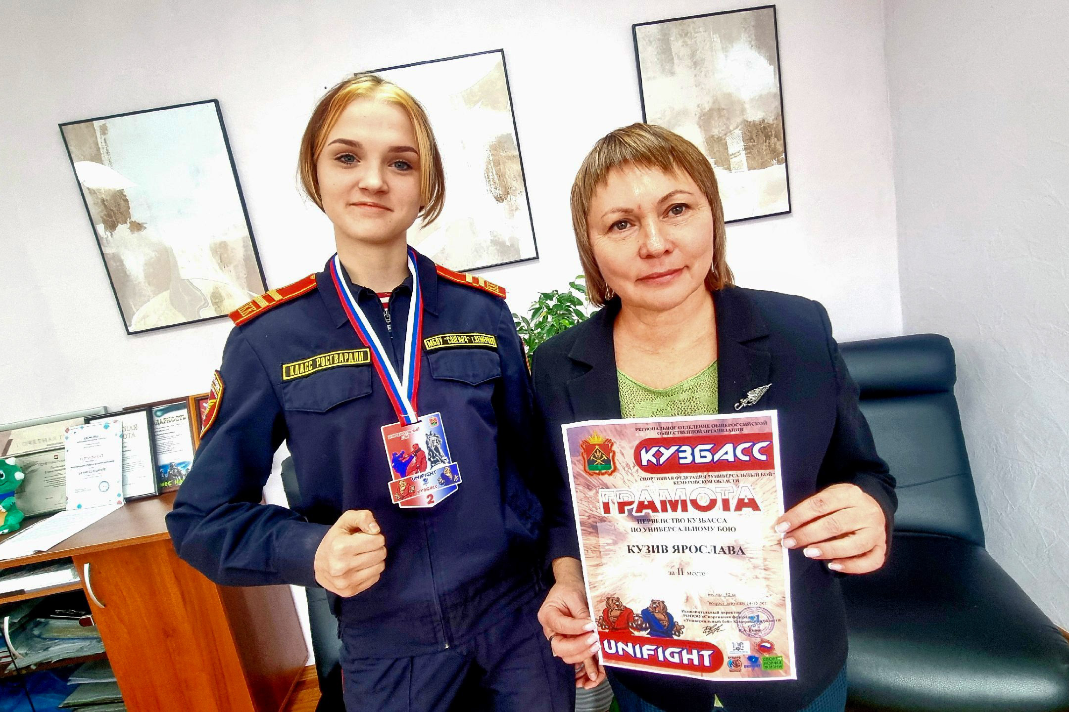 В Кемерове прошло Первенство Кузбасса по универсальному бою с участием более 300 спортсменов. Ученица 9-го класса профильного класса Росгвардии Ярослава