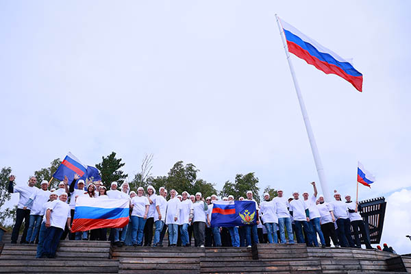 Акция прошла на Николаевской сопке, где расположен флагшток с государственным флагом. Сотрудники правоохранительных органов, надев футболки цветов российского