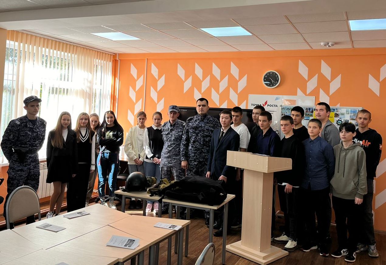 Начальник Называевского отделения вневедомственной охраны Росгвардии по Омской области лейтенант полиции Станислав Шпехт провел уроки мужества в учебных
