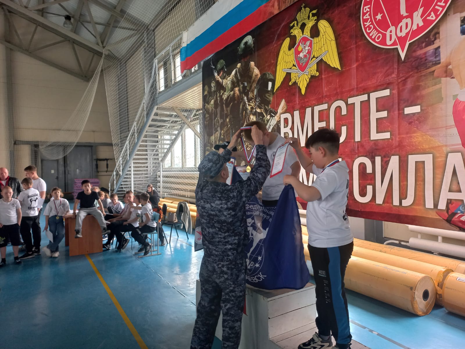 На стадионе «Молодежный» в городе Исилькуль Омской области состоялись соревнования по кикбоксингу, посвященные памяти погибших на СВО и сотрудников спецподразделений Росгвардии.