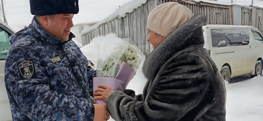 В преддверии Международного женского дня сотрудники вневедомственной охраны территориального управления Росгвардии навестили матерей сотрудников войск