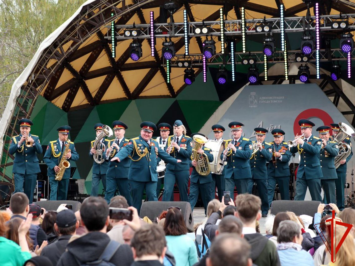 В Томской области военный оркестр и ансамбль «Люди в погонах» Северского соединения Росгвардии провели праздничные концерты в честь Дня Победы для жителей региона.