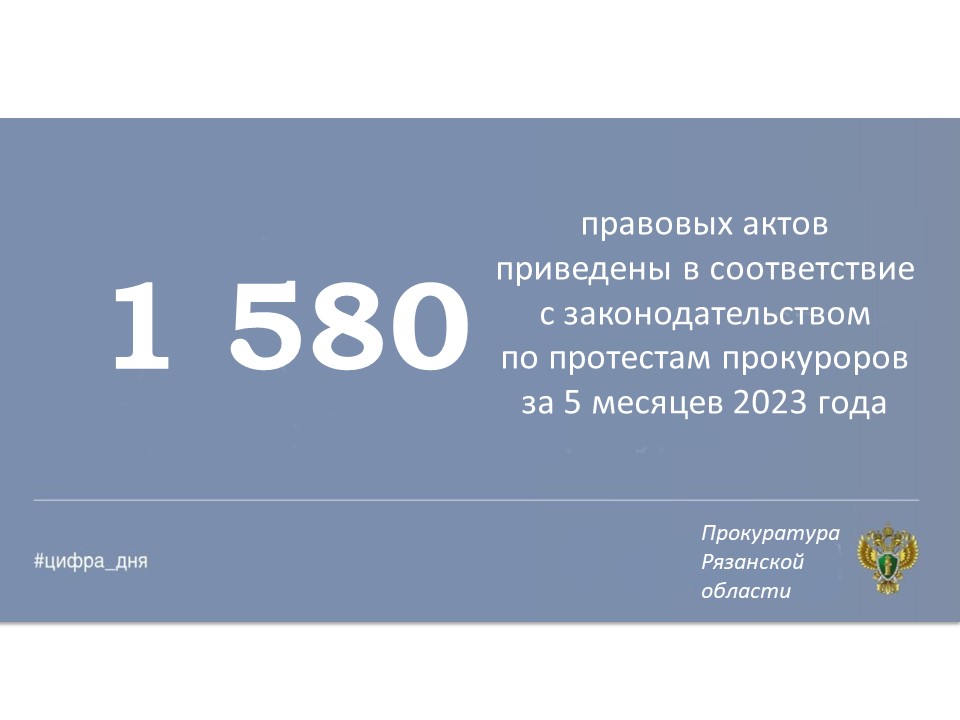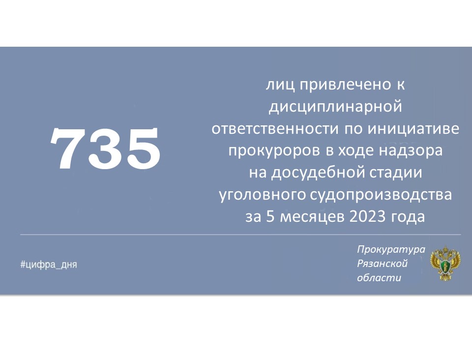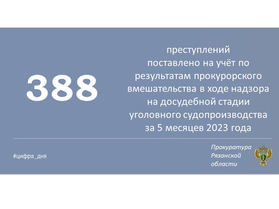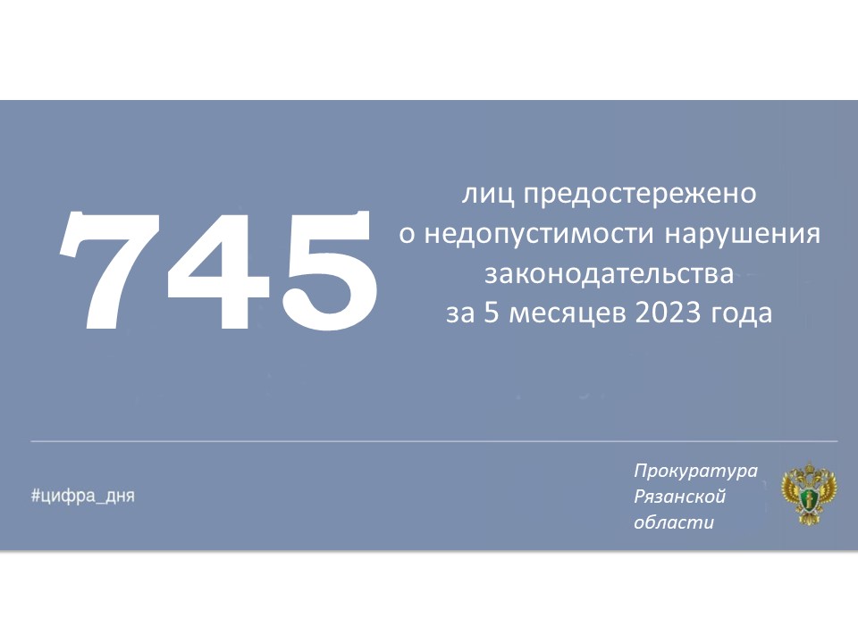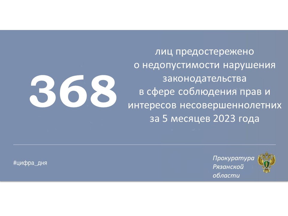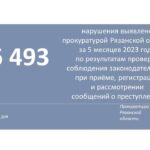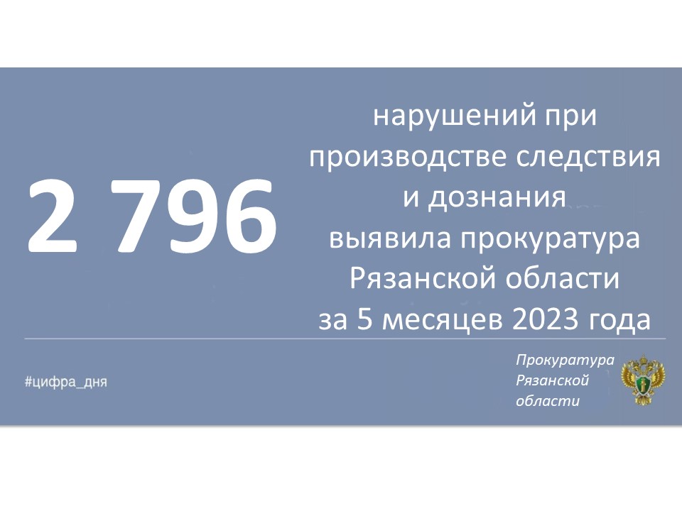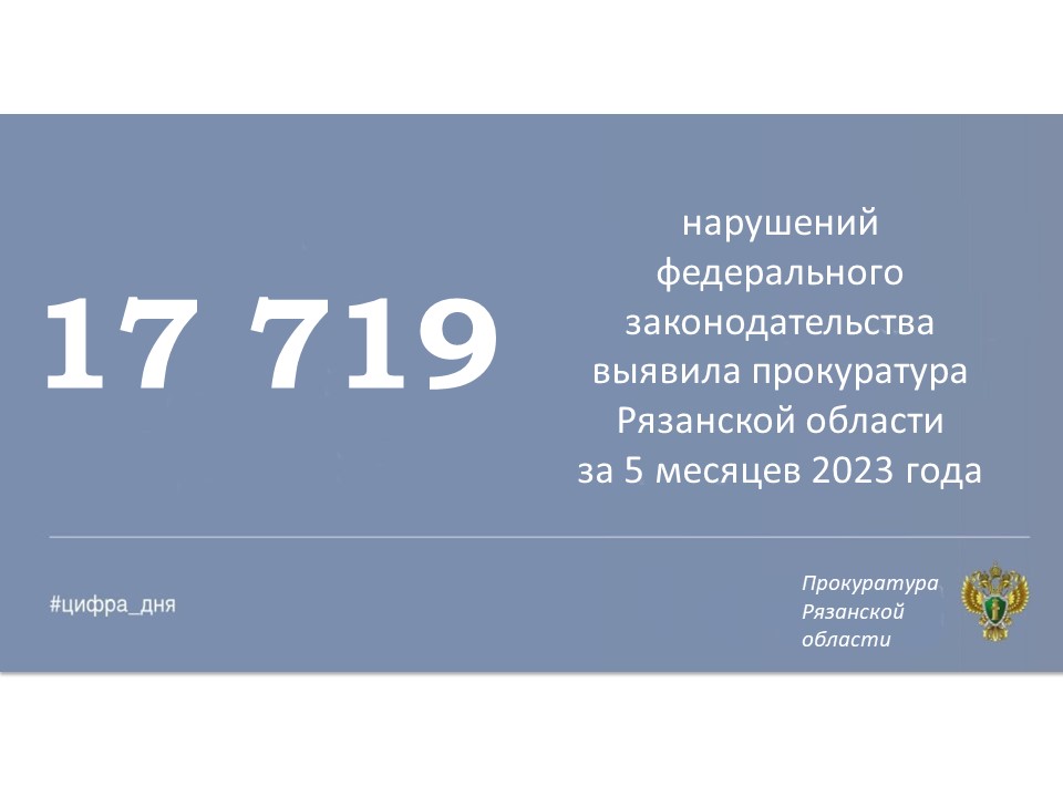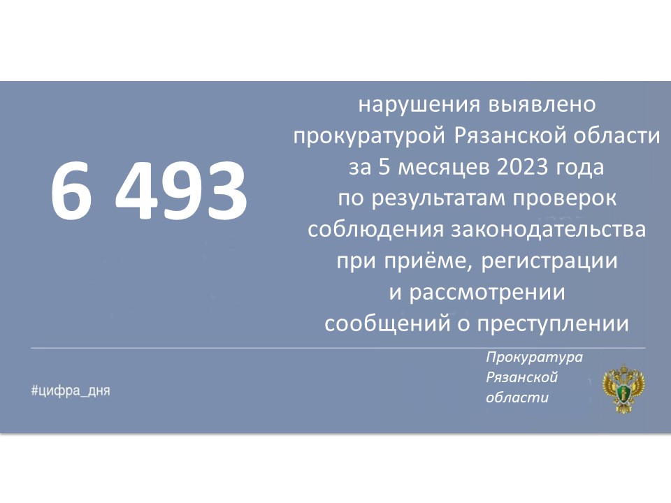 Главная » Инфоканалы #ЦИФРА_ДНЯ: Основные результаты надзорной деятельности органов прокуратуры Рязанской области за январь-май 2023 года Автор Прокуратура Рязанской области На чтение 1 мин Просмотров 2 Опубликовано 14.06.2023 Основные показатели работы органов прокуратуры Рязанской области за январь-май 2023 года.