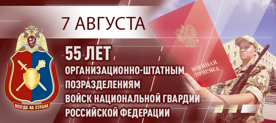 7 августа отмечается 55-я годовщина образования организационно-штатных подразделений войск национальной гвардии Российской Федерации. С профессиональным праздником военнослужащих, сотрудников и ветеранов службы поздравил первый заместитель директора Росгвардии генерал-полковник Виктор Стригунов.