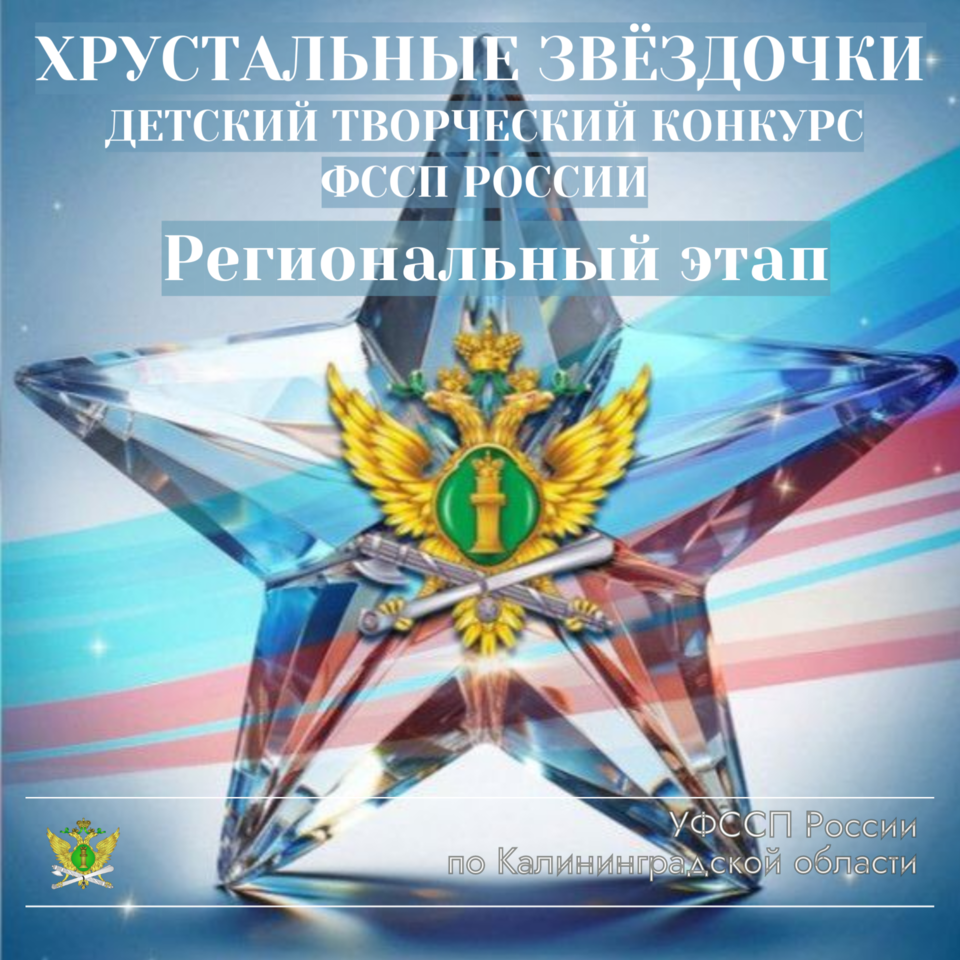 УФССП России по Калининградской области приглашает юных калининградцев в возрасте от 7 до 18 лет принять участие во Всероссийском ежегодном фестивале-конкурсе «Хрустальные звездочки», инициатором которого выступает Федеральная служба судебных приставов.