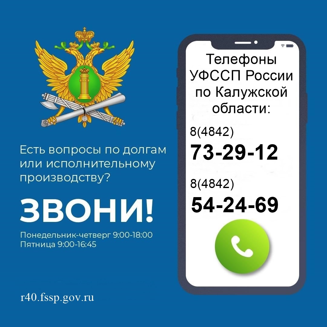 Напоминаем, что в УФССП России по Калужской области работает группа телефонного обслуживания, которая призвана повысить качество взаимодействия судебных приставов со сторонами исполнительного производства.