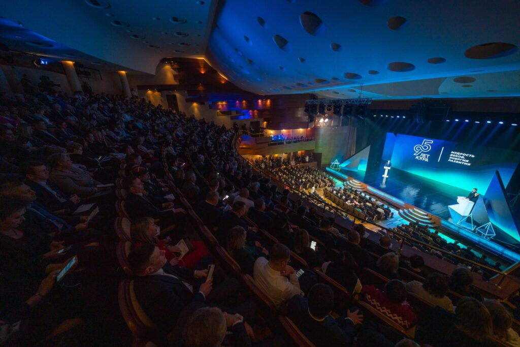Перед началом торжества гости ознакомились с выставочной экспозицией в холле КТЦ. Выставка демонстрирует главные достижения Югры — от масштабных инфраструктурных проектов до ярких культурных событий.
