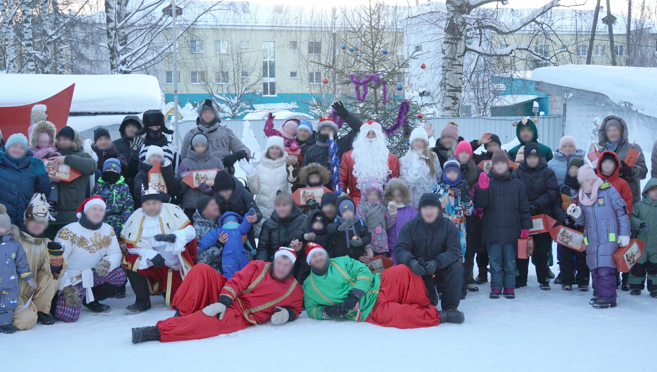 Дед Мороз специального назначения со своими помощниками не дал детям и взрослым замерзнуть в хороводе песнями и танцами, интерактивными играми.