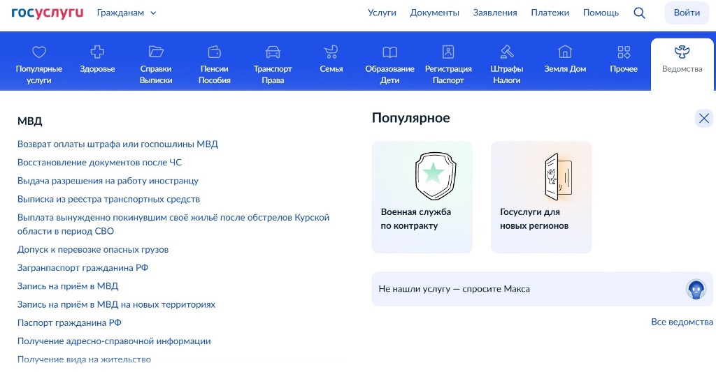 Возможность получения государственных услуг, предоставляемых органами внутренних дел, электронным способом доступна каждому гражданину. Для этого необходимо зарегистрироваться на портале www.gosuslugi.ru, после чего вы сможете получить следующие государственные услуги, оказываемые МВД, без посещения уполномоченного органа: