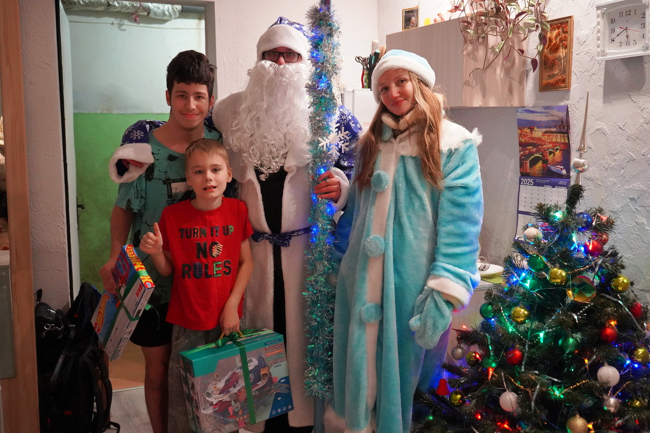 Калининградские приставы в костюмах Деда Мороза и Снегурочки пришли к ребятам домой, поздравили с наступающими праздниками и вручили подарки.