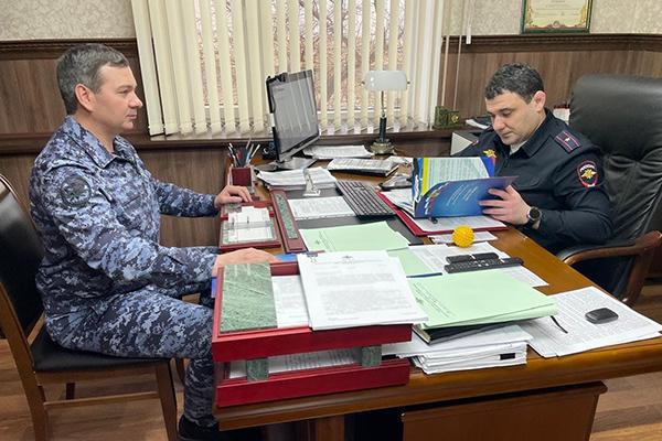 Начальник ФКУ ИК-7 УФСИН России по Республике Дагестан подполковник внутренней службы Хаджимурад Саламов провел рабочую встречу с начальником Центра хозяйственного и сервисного обеспечения МВД по Республике Дагестан майором внутренней службы Исламом Абуганипаевым.