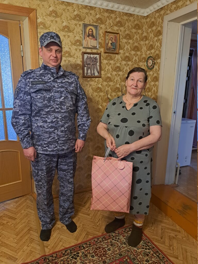 Ранее в честь празднования образования Росгвардии Агальцевой Л.М. был вручен подарок в виде продуктового набора.