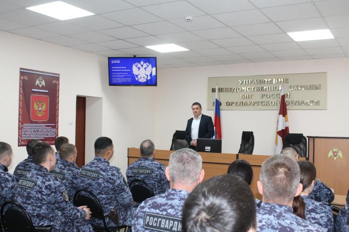 Помощник проректора по безопасности Российского государственного университета нефти и газа имени И.М. Губкина Владимир Калинин обсудил с росгвардейцами вопросы по противодействию идеологии терроризма и экстремизма, сохранению и укреплению традиционных российских духовно-нравственных ценностей. В своем выступлении Владимир Калинин отметил, как важно уважать веру и культуру нашего многонационального народа. Были рассмотрены виды терроризма и экстремизма, источники их распространения среди граждан.