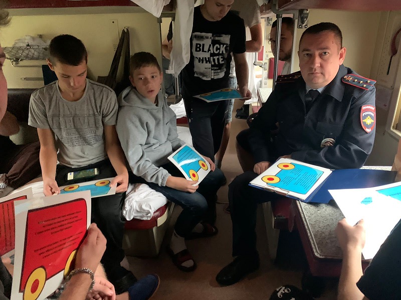 В пути следования сотрудники отдела по делам несовершеннолетних провели викторину «Паровоз безопасности» и напомнили ребятам, что нахождение на железнодорожных путях, переход их в не установленных местах, озорство, хулиганство и необдуманные поступки всегда связаны с риском и опасностью для жизни, во избежание чего необходимо строго соблюдать установленные на железной дороге правила безопасного поведения.