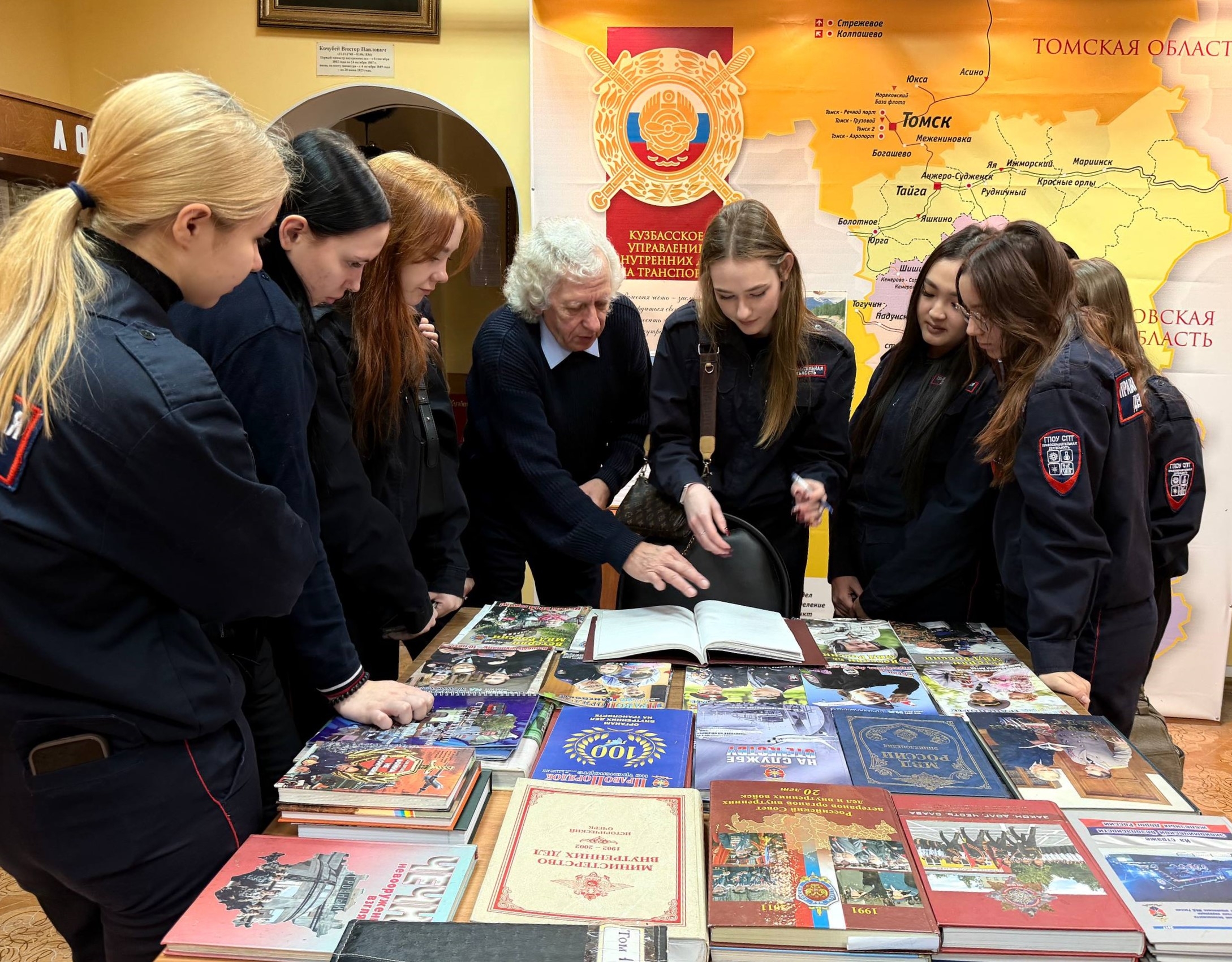В рамках Всероссийской акции «Студенческий десант» сотрудники Кузбасского ЛУ МВД России совместно с членами Общественного совета и Советом ветеранов при линейном управлении провели для гостей обзорную экскурсию, рассказали об истории управления, продемонстрировали экспонаты музейной комнаты.