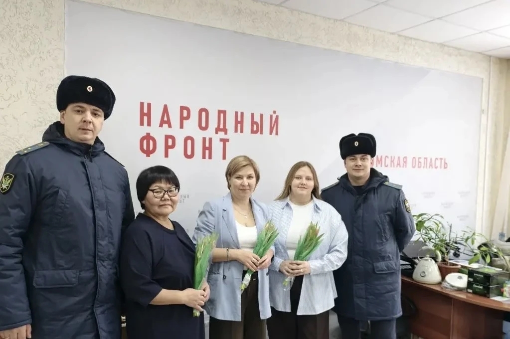 Сегодня сотрудники УФССП России по Томской области в рамках акции «Вам, любимые!» поздравили с предстоящим праздником 8 Марта женщин-волонтеров регионального отделения Общероссийского народного фронта. Судебные приставы подарили сотрудницам штаба общественной организации букеты тюльпанов.