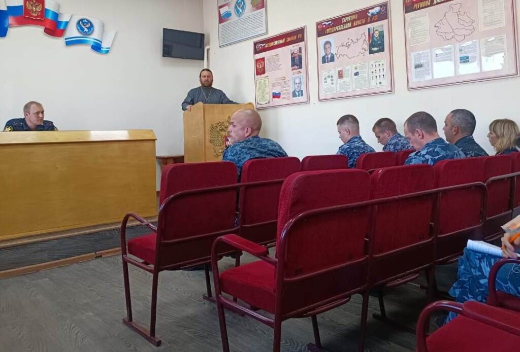 Помощник начальника ОФСИН России по Республике Алтай по организации работы с верующими протоиерей Сергей Коньков провел беседу с сотрудниками исправительной колонии ОФСИН о противодействии экстремизму деструктивных религиозных течений.