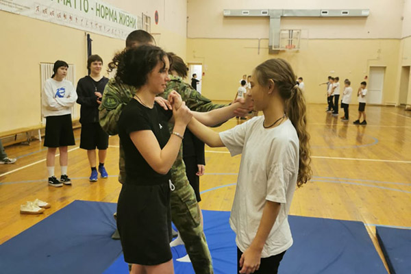 В спортивном зале школы сотрудники ведомства показали ребятам основные приемы самозащиты при нападении злоумышленников и объяснили, как действовать в критической ситуации.