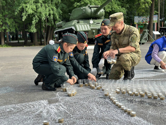 В преддверии Дня памяти и скорби на территории парка «Победы» сотрудники и военнослужащие Управления Росгвардии по Ульяновской области совместно с воспитанниками «Гвардейской смены», волонтерами Победы, активистами и неравнодушными жителями региона приняли участие в акции «Огненные картины войны», выложив изображение из свечей, посвященное вкладу Ульяновской области и его жителей в победу в Великой Отечественной войне.